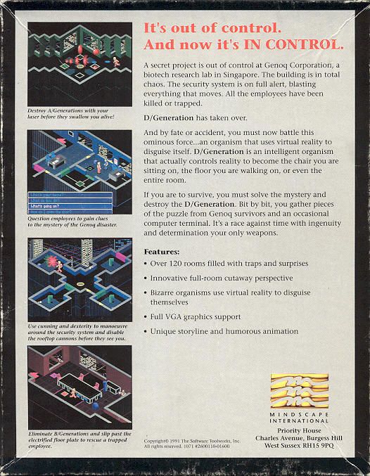 D/Generation is an isometric action adventure/puzzle game released by Mindscape in 1991.