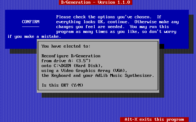 Version 1.1.0 of the game with VGA and Ad Lib options selected. |