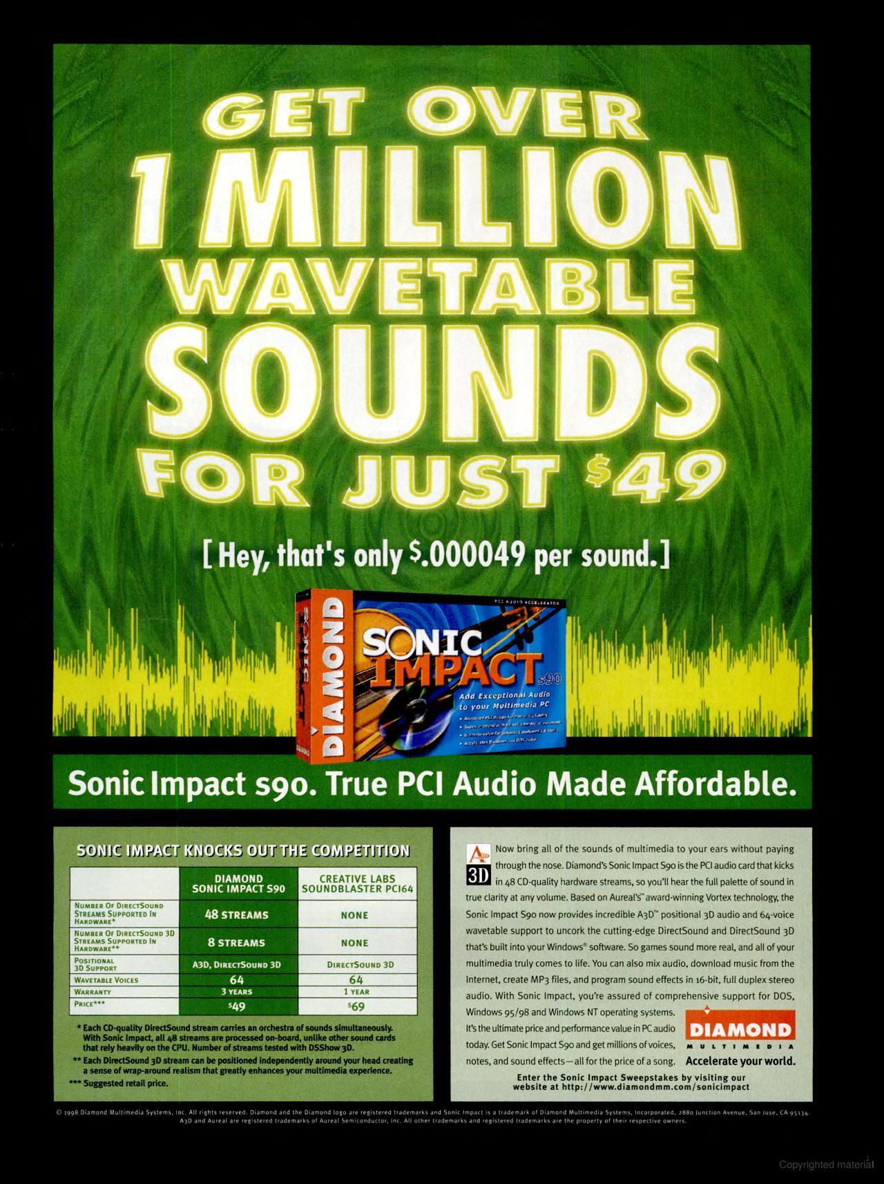 The Sonic Impact S70, S90 and S100 were the value-oriented sound card line from Diamond, released in 1998.