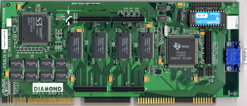The Stealth 64 VRAM was released in 1994 and was based around the S3 Vision964 graphics accelerator chipset.