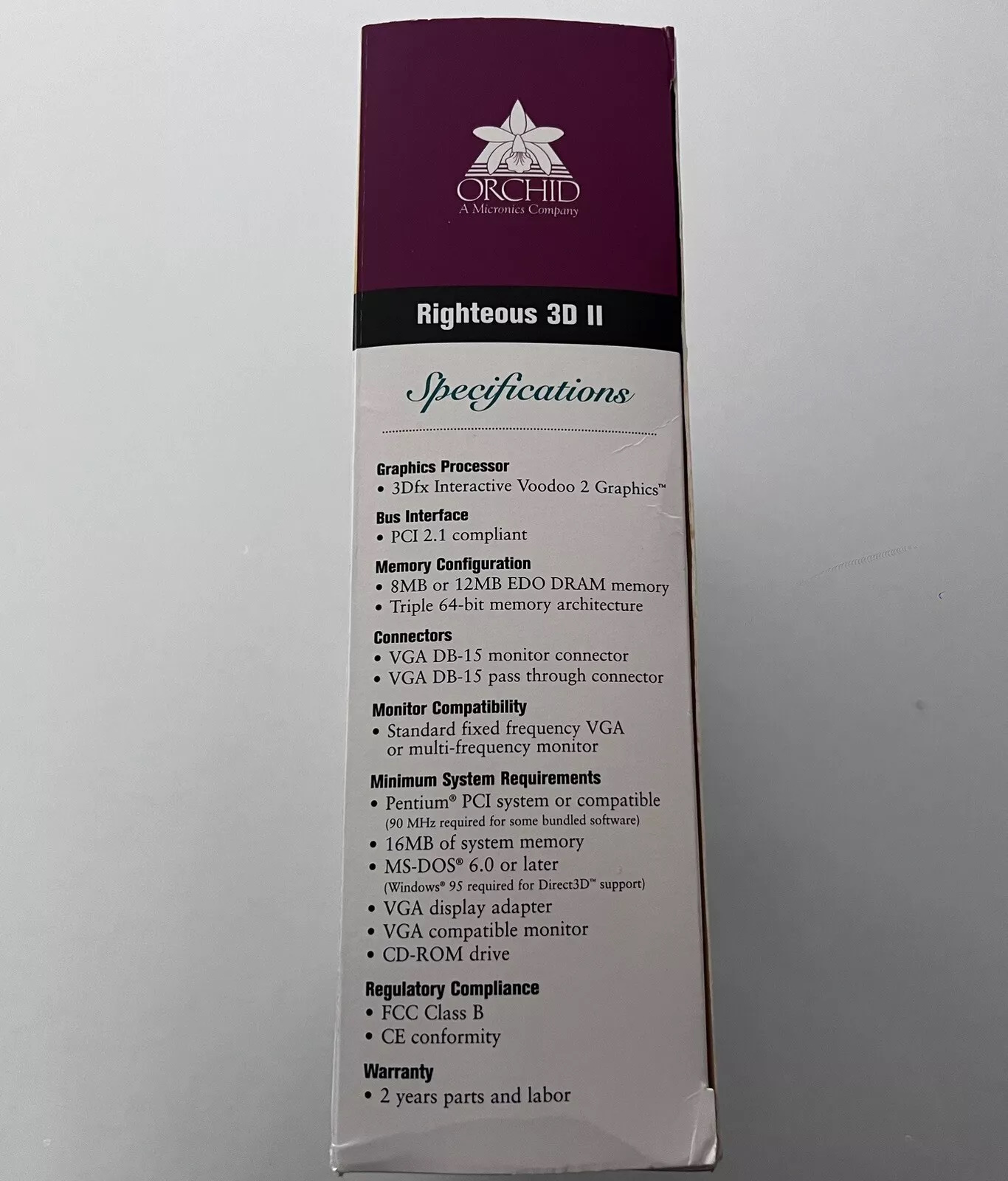 The original retail box for the Orchid Righteous 3D II (1998)