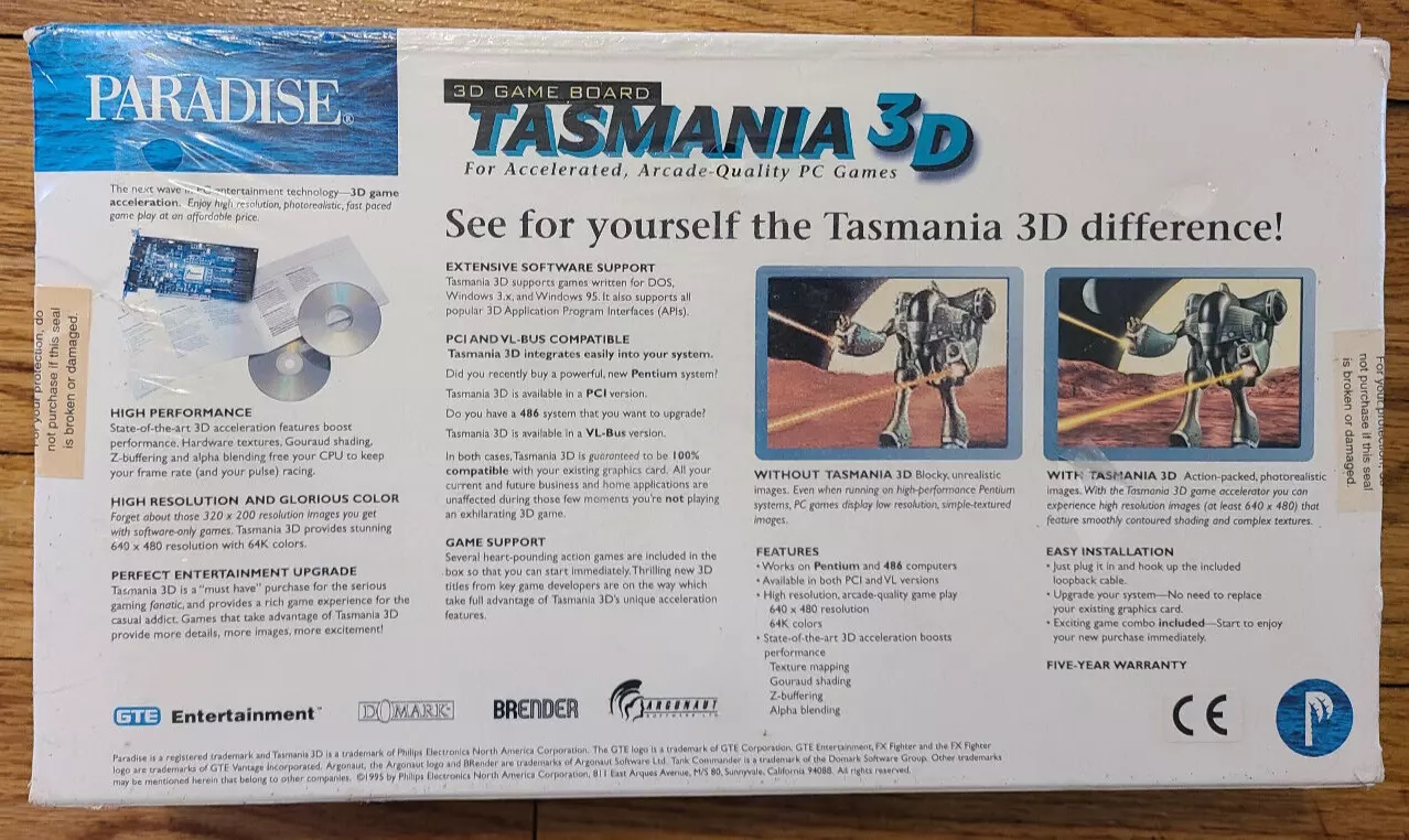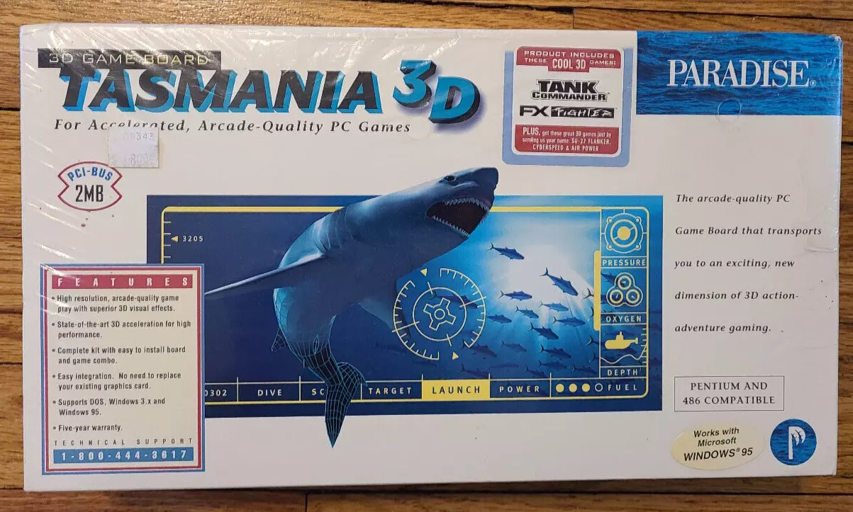 The Tasmania 3D was a dedicated 3D graphics accelerator sold by Western Digital under the Paradise brand in late 1995.