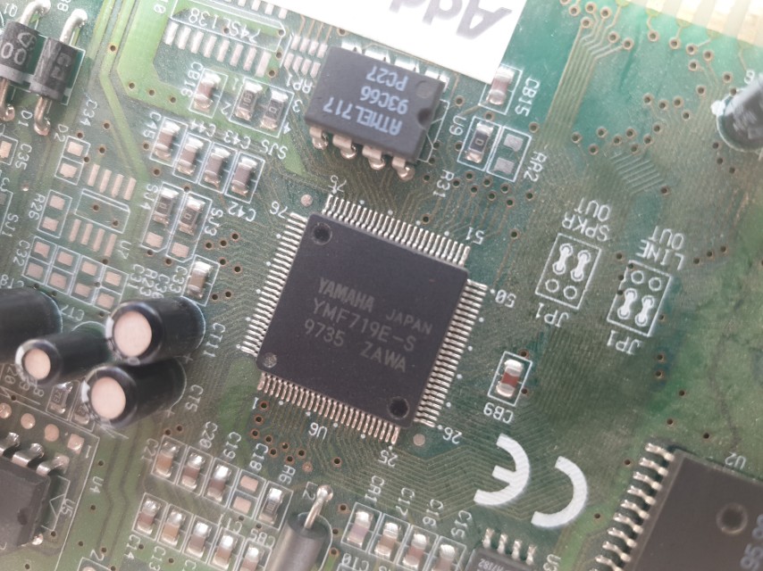 You'll notice this version of the card comes with the IDE CD-ROM header but is missing the wavetable header. It also differs from the earlier card in this review in that it has the OPL3-SA3 (YMF719E-S) with its Yamaha Ymersion 3D effect.