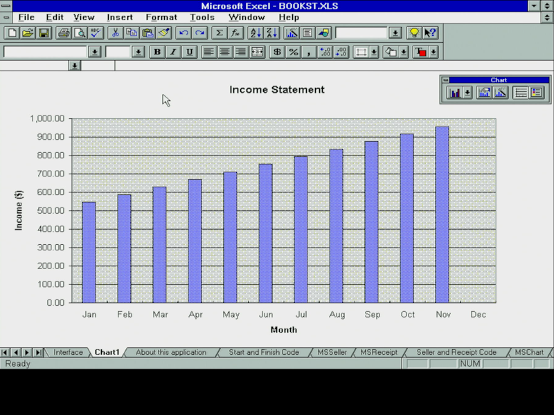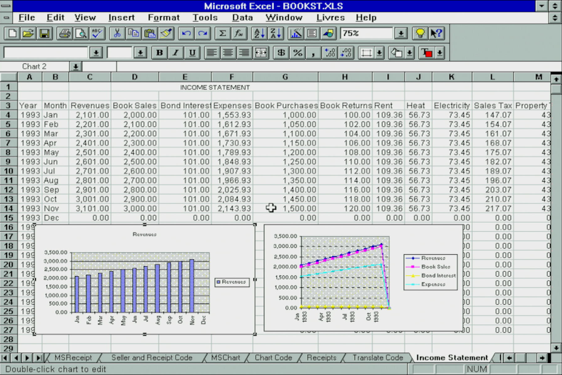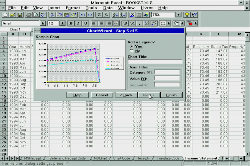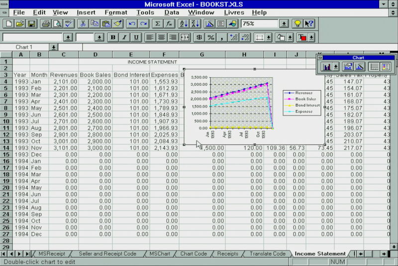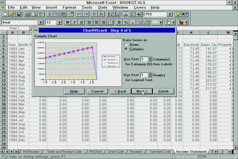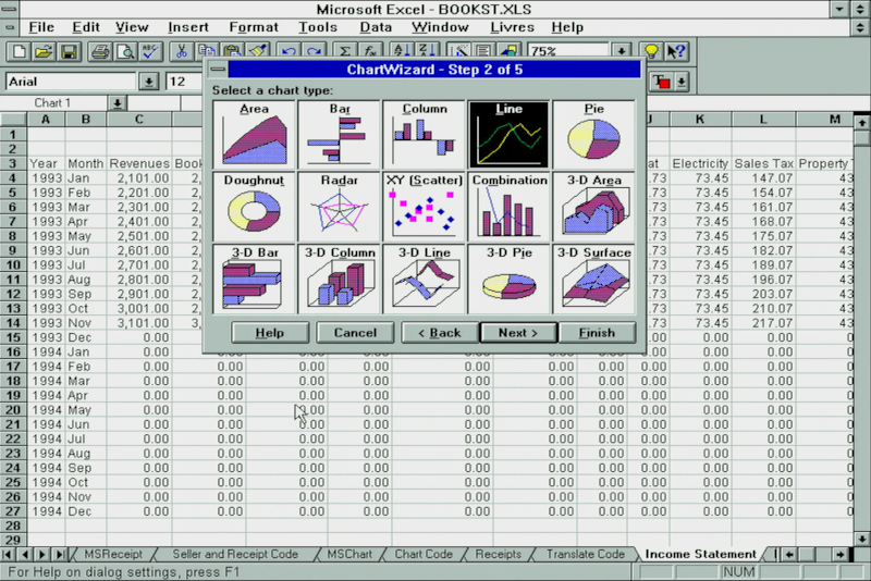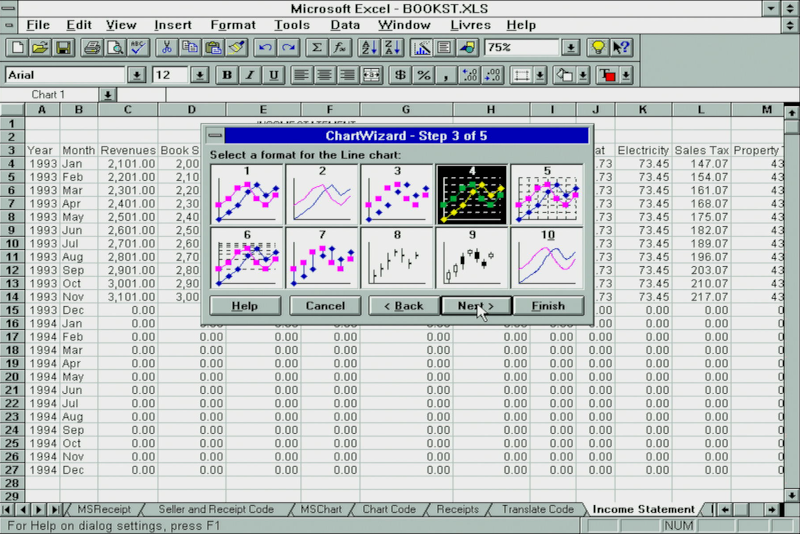 Excel 5.0 had a solid set of charting capabilities, and with the ChartWizard it would try to interpret the best type of chart for the data you had selected: