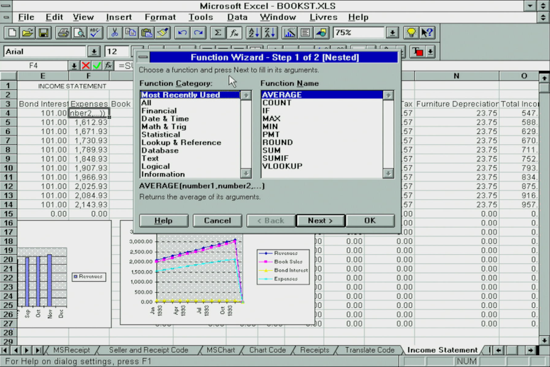 Excel 5.0 came with 225 built-in functions and with the Function Wizard it was quick and simple to set one up: