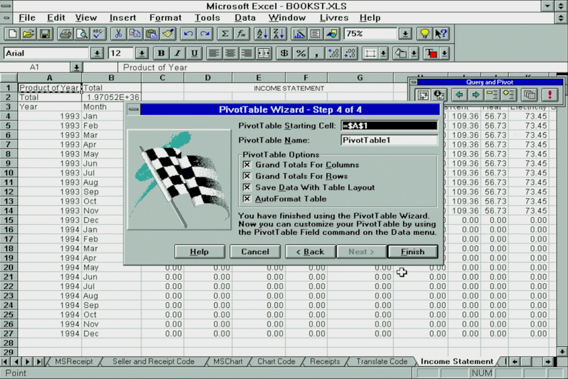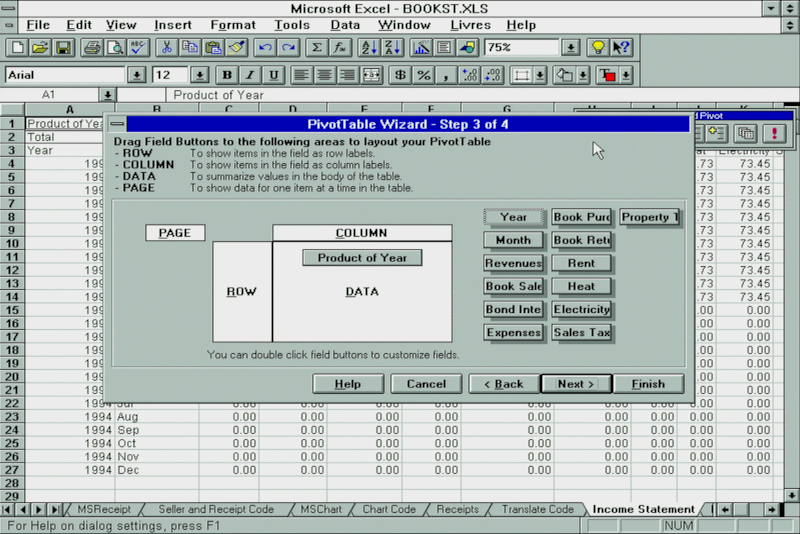 For faster data analysis and modelling, pivot tables were a powerful new feature in Excel 5.0: