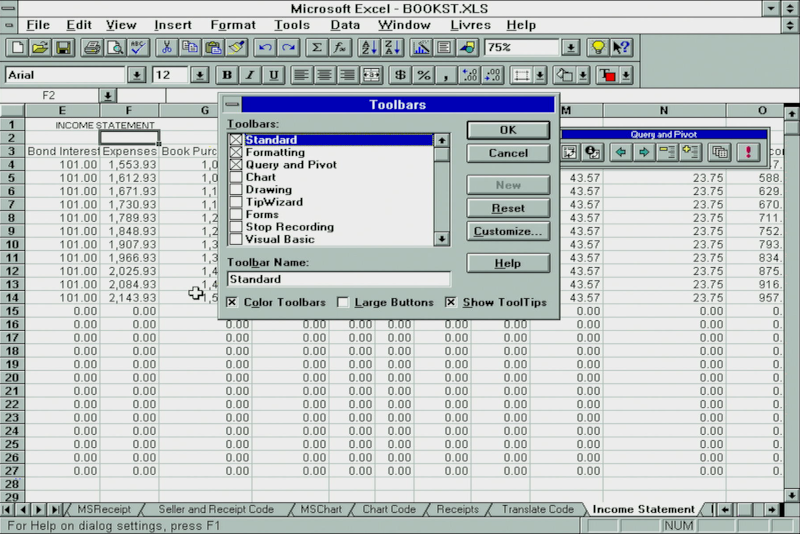 Excel 5.0 tooltip and creating a custom toolbar