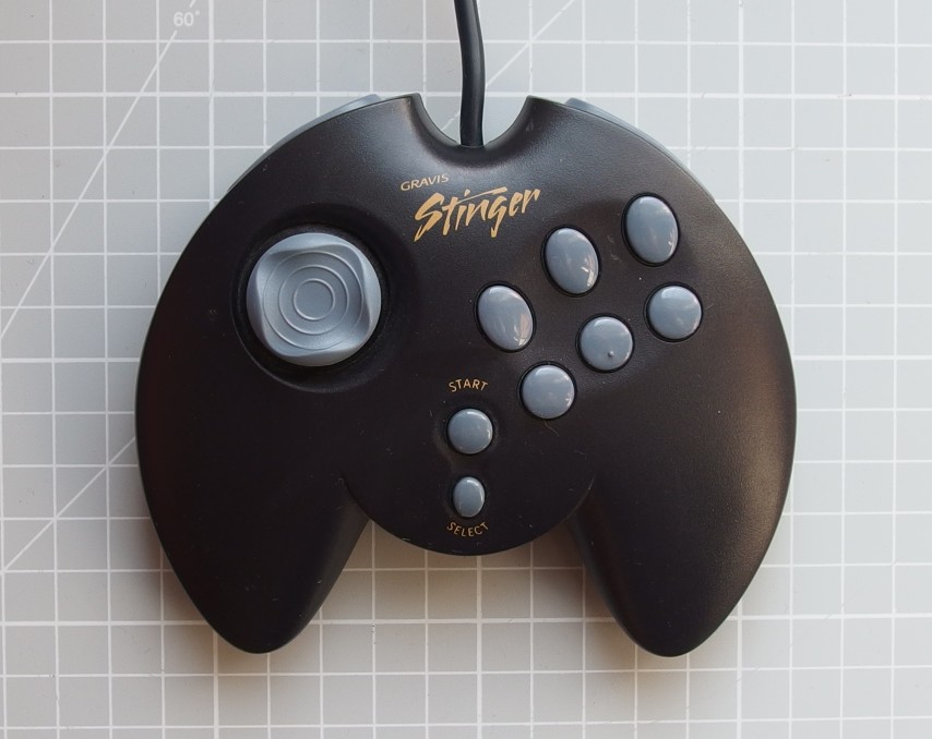 The Gravis GamePad Pro added four shoulder buttons in addition to 'Select' and 'Start' buttons, and more closely resembled an original Sony PlayStation controller.