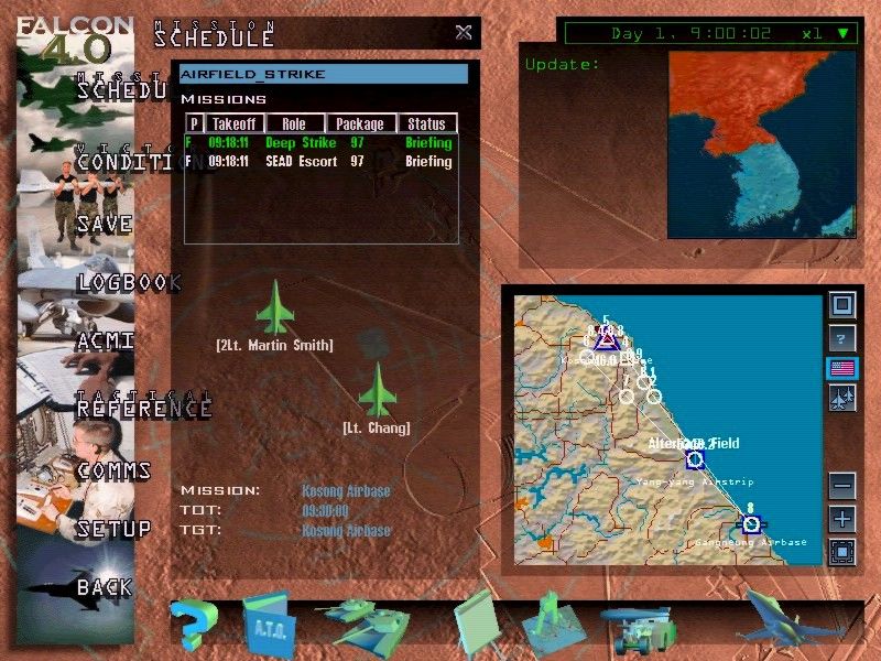 Like some other more modern flight sims, Falcon 4.0's briefing room allows you not only to identify and plan out the mission objectives, but also issue instructions to ground units in order to achieve a successful outcome.