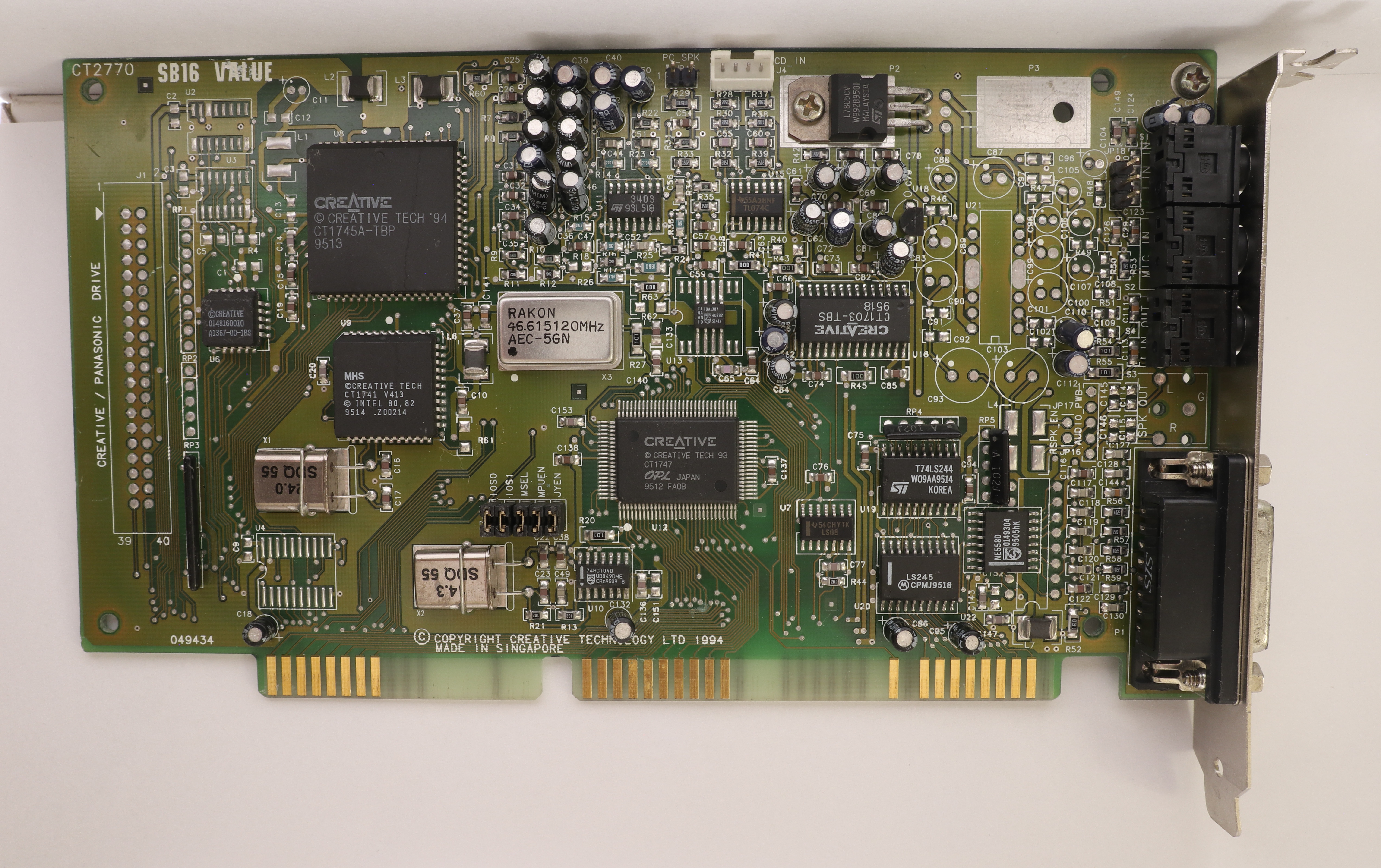 The CT2770, full name, Sound Blaster 16 Value Edition, was launched in 1994. Being a value edition card, it was pared down to the minimum - no wavetable header and only a Panasonic CD-ROM interface.