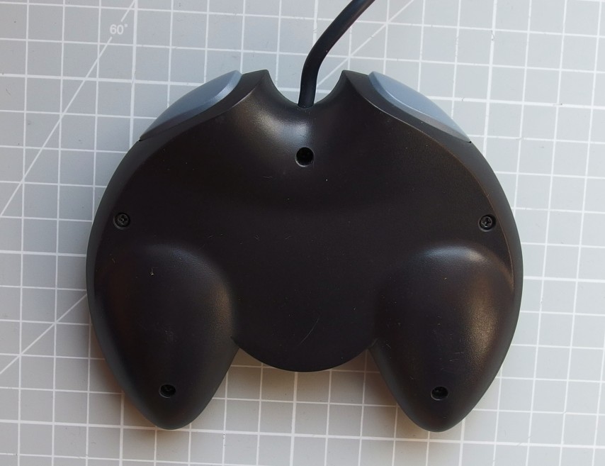 In a first for PC game controllers, the GamePad included four action buttons. By default, the IBM PC game port could only support two, so games had to be specially programmed to utilise all four on the Gravis pad. If a game didn’t support four buttons, you just flipped a switch on the lower edge of the pad, and the extra buttons became turbo versions of the original two.