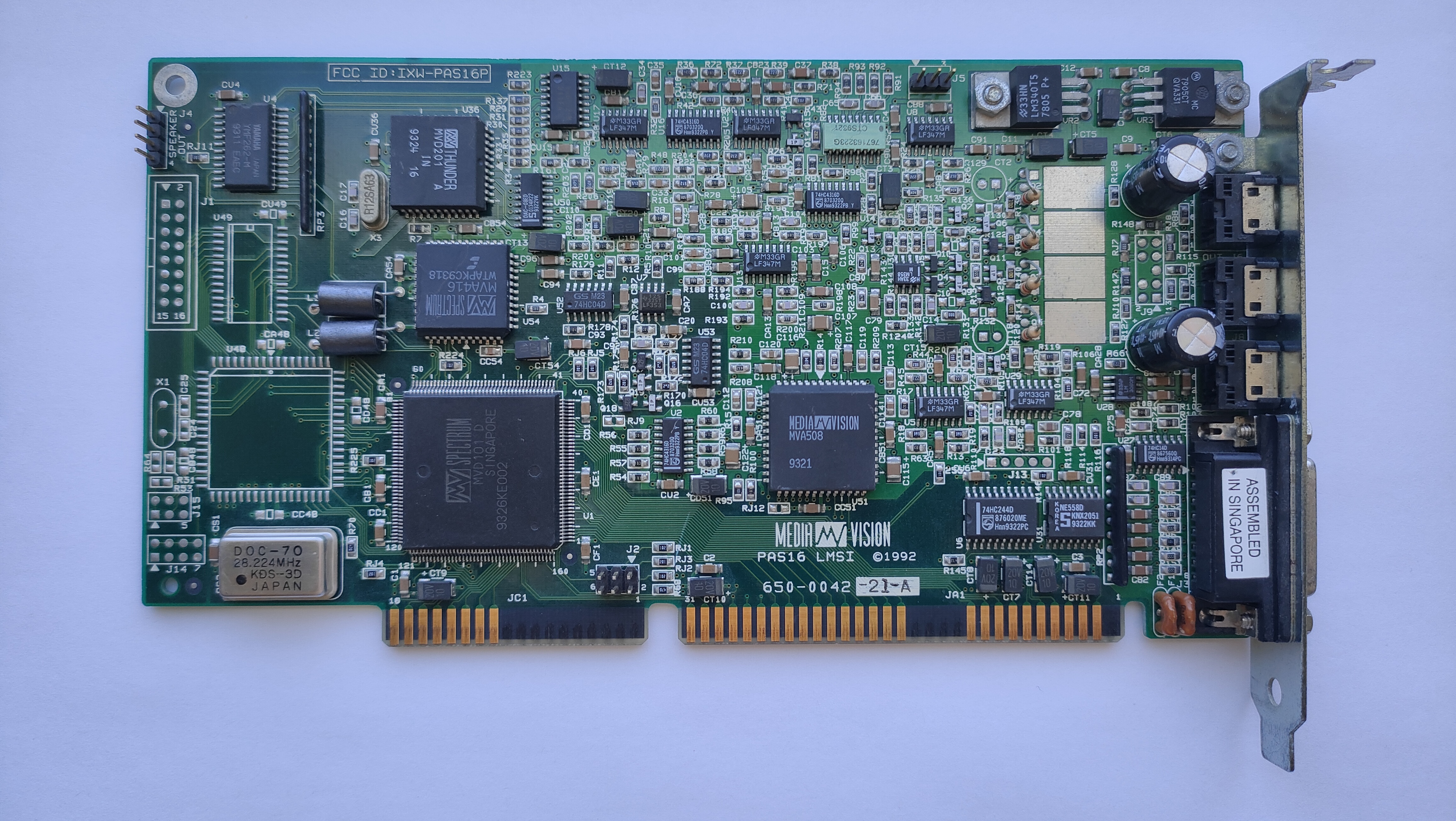 There was also a Pro Audio Spectrum 16SL (Part #:650-0032-04I, FCC ID: IXW-PAS16SL). This came with a Sony CD-ROM interface (the official name of this was SLCD but was rarely used), hence the 'SL' suffix.