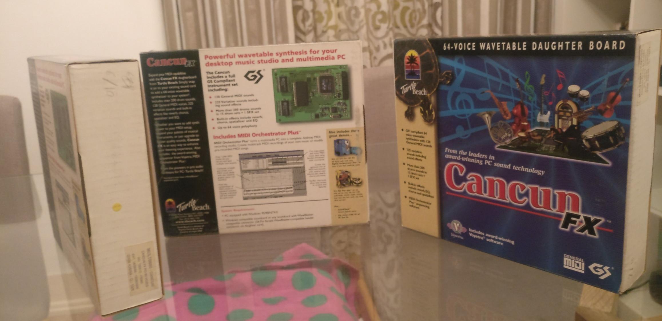 The Cancun FX was a wavetable MIDI daughterboard based on the Dream SAM9733 chip. It came with a huge 4 MB ROM onboard for samples.