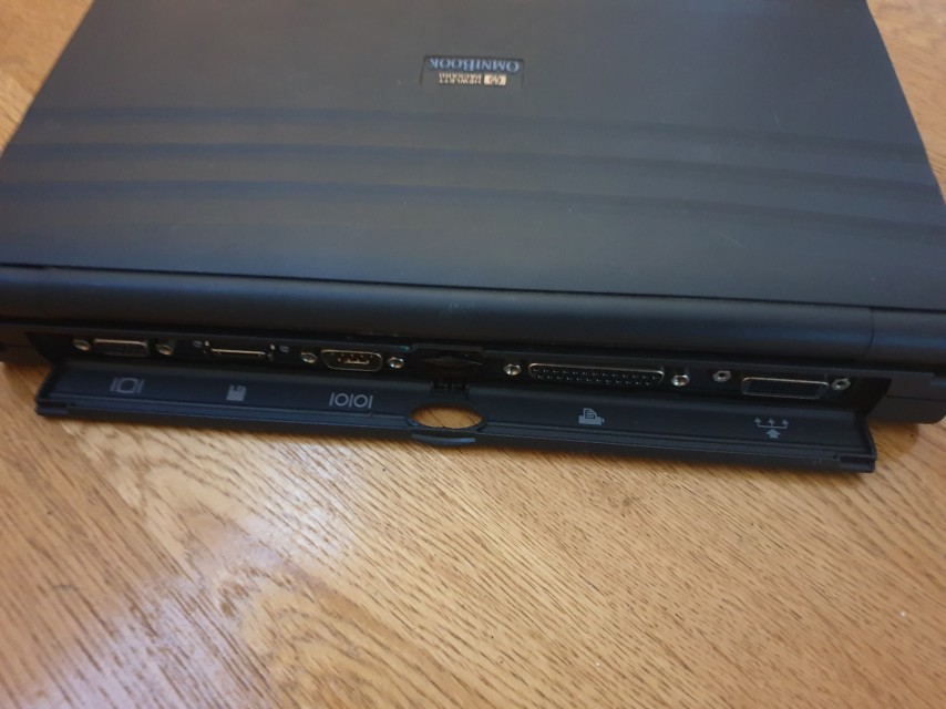 As was typical of laptops of this time period, it also came with a PCMCIA slot, (this was later rebranded as the PC card slot) - well actually there were two slots, depending on the type of cards being used. These were very popular in 1990s laptops and notebooks and into the 2000s, offering a decent peripheral interface where previously there was none. These ones support the SystemSoft Card Services and Socket Service v2.1 standards. It's too early to support the CardBus standard, as that was a 32-bit version of the PC Card spec based on PCI that arrived in 1995. You could install two Type I or Type II PCMCIA cards, or a single Type III card. These slots were typically used to install mass storage or communication devices such as a network card or modem. Solid State hard disk cards tend to be Type III, which are taller than Type I or Type II cards to fit more components in, whereas modem cards for example, were typically Type II. If using the upper slot with a storage device, this will be your D: drive, and the lower slot will be drive E:. If you install a Type III storage card in the lower slot, this comes out as drive E:.