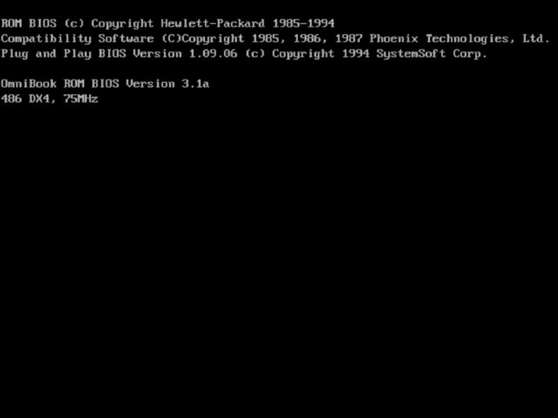 The Omnibook 600 series used a custom version of the Phoenix Plug & Play BIOS, which was stored on an EEPROM on the motherboard. This was user-upgradeable via the floppy drive.