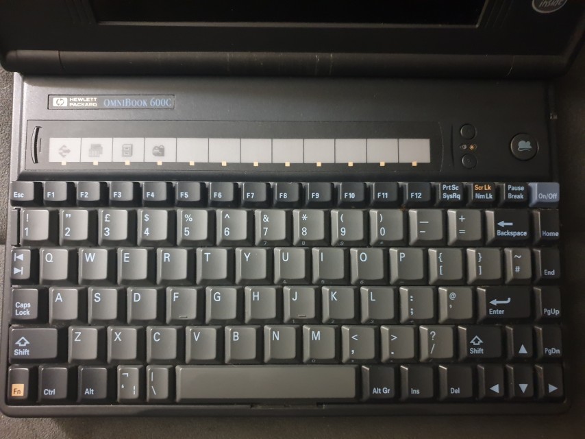 The 85-key keyboard on the Omnibook 600 series is very comfortable to use with full-size touch-type keys that have a decent amount of key travel and feedback. On my unit, they are however, very 'heavy' and are unforgiving if you try to push a key down on its edge. This is probably due to an extended time of non-use, and they ought to loosen up after some exercise.