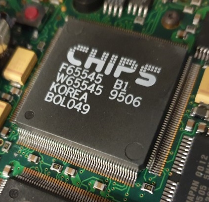 The F65545 supported a 32-bit memory interface and graphics acceleration functions included 32-bit BitBlt (bit-block transfers) as well as hardware stretching vertically in graphics and text mode, though only horizontal stretching in text mode - this isn't an issue with our 640 x 480 LCD display here, as stretching isn't required for most applications. DOS games tended to run in 320 x 200, so it would use basic pixel-doubling (not hardware stretching) to run in 640 x 480 - perfect!