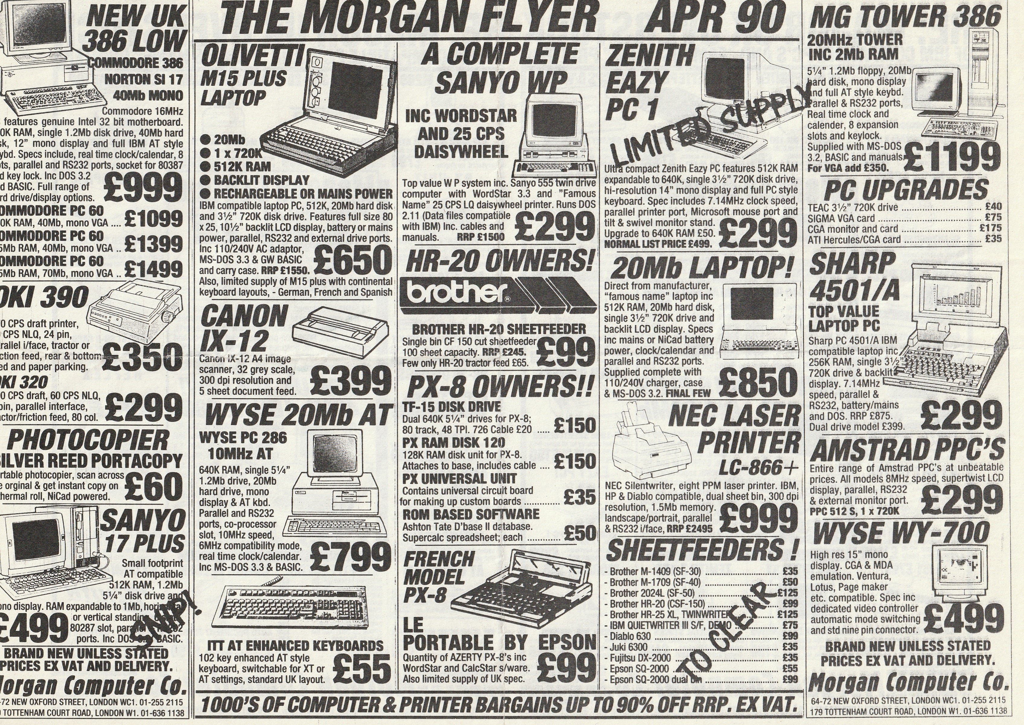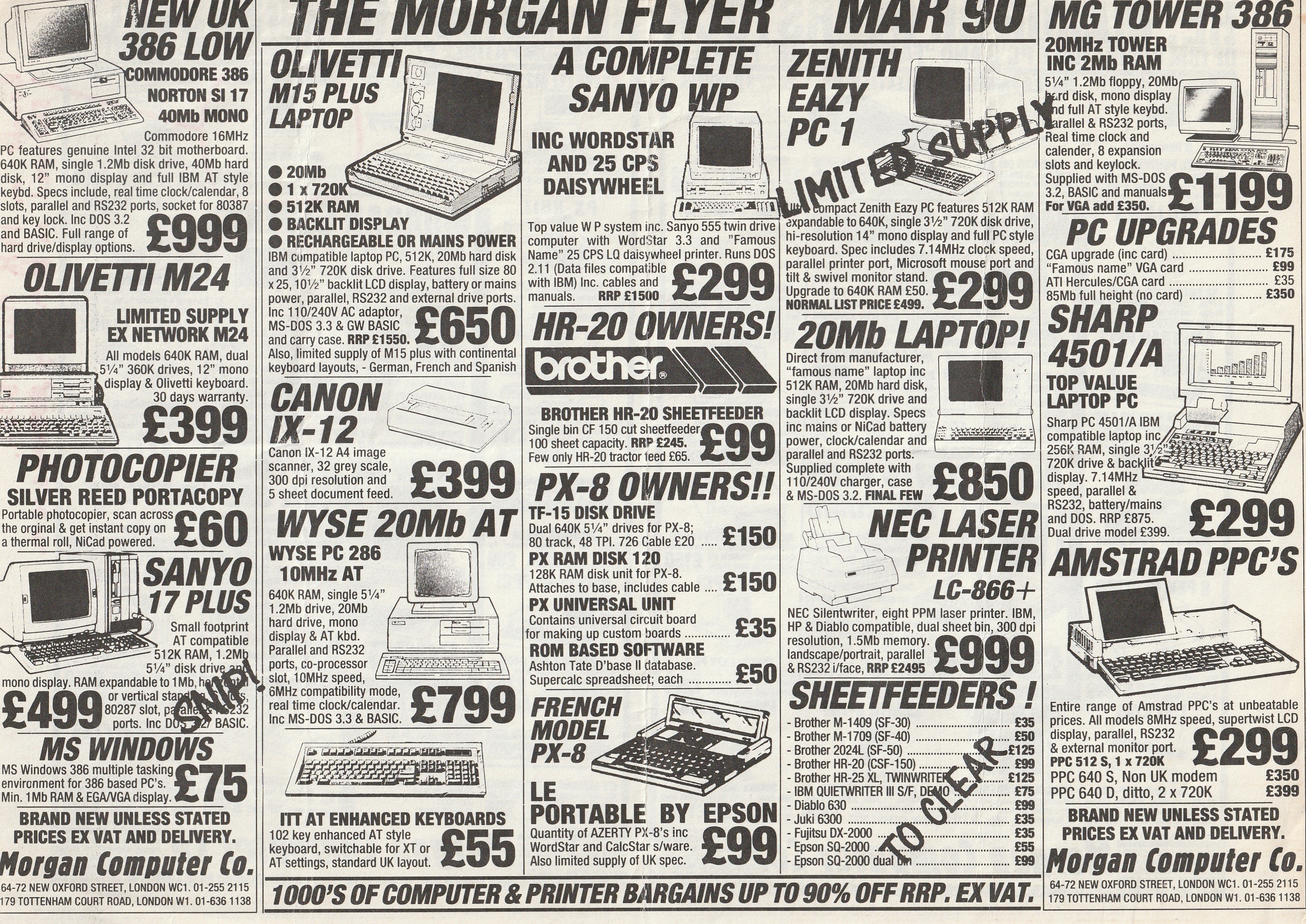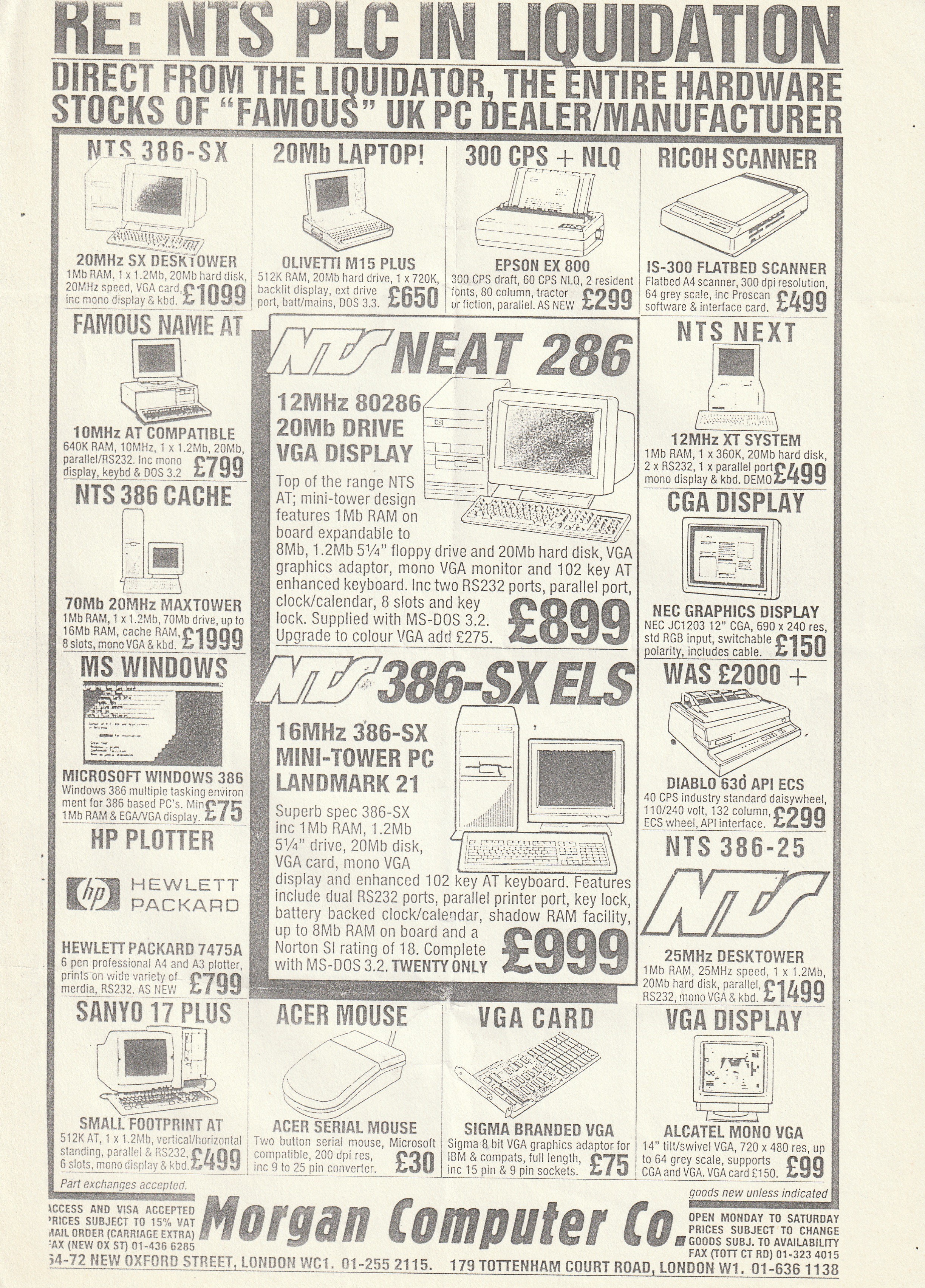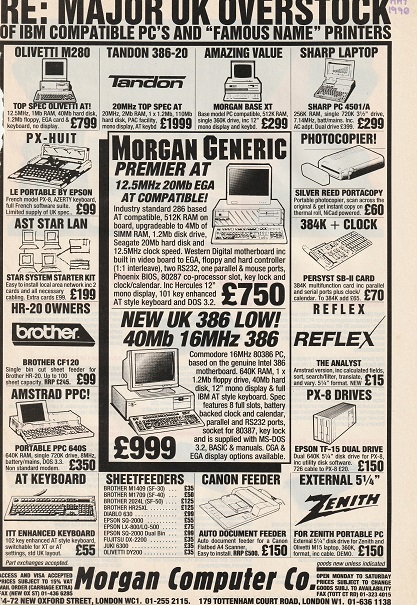 As I referenced in the XT Restoration article, Morgan Computers was a computer hardware and software retailer here in the UK in the 1980s and 1990s, with a focus on surplus and liquidated stock. This means a lot of what they sold tended to be older models or older versions of software, though unless advertised everything was brand new and in original packaging - a boon for those of us who were on a tight budget!
