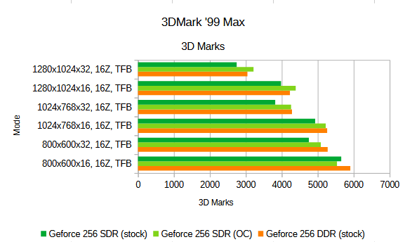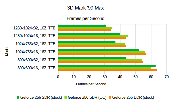 So here's how the GeForce 256 DDR ran on the Pentium III with the above settings via AGP 2x: