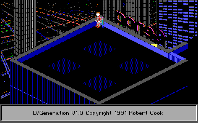 D/Generation was originally developed for the 128 KB Apple IIe, but this version was never released. Instead, D/Generation was released for DOS, Atari ST and Commodore Amiga in 1991, and in 1993 ported to the Amiga CD32.