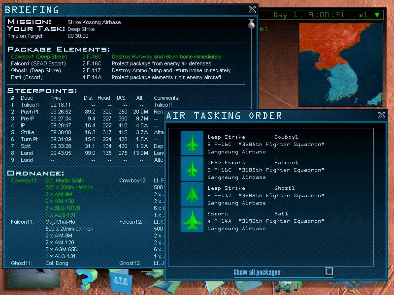 Like some other more modern flight sims, Falcon 4.0's briefing room allows you not only to identify and plan out the mission objectives, but also issue instructions to ground units in order to achieve a successful outcome.