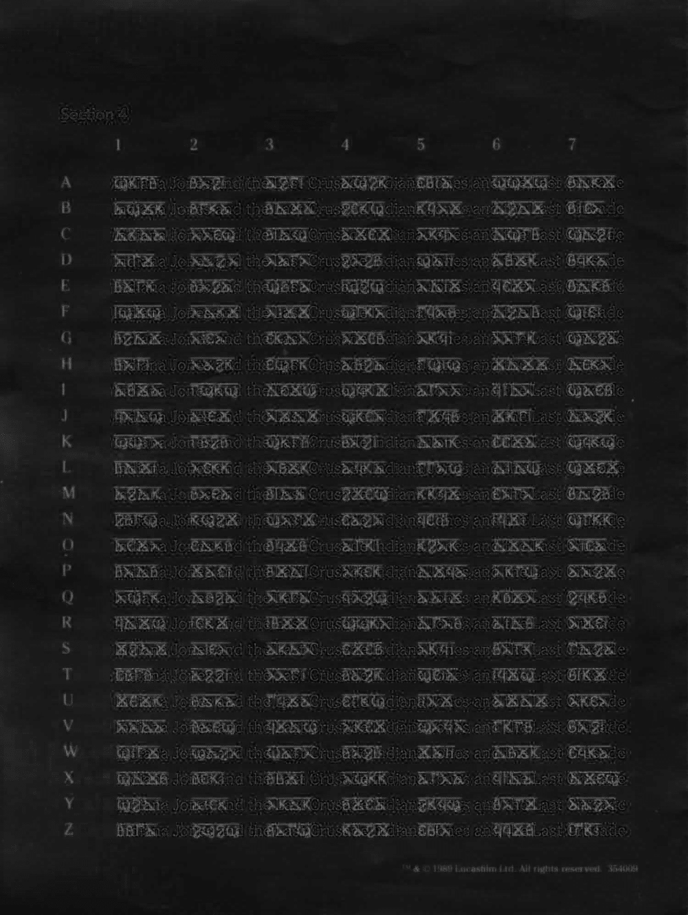 Indiana Jones and the Last Crusade: The Graphic Adventure uses manual copy protection. After the intro sequence, Brody asks you to translate a parchment: