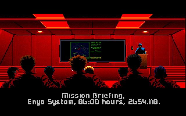 The first game in what would become a long-running franchise, Wing Commander is a space combat simulator from ORIGIN Systems, released in 1990. Somewhat unique at the time was the immersive storyline intermixed with the action gameplay. The player takes on the role of a nameless pilot (later referred to as Christopher Blair in sequels) aboard the TCS Tiger's Claw, a Bengal-class Strike Carrier. The Terran Federation are at war with the feline-like Kilrathi Empire, who are bent on the destruction of the human race.