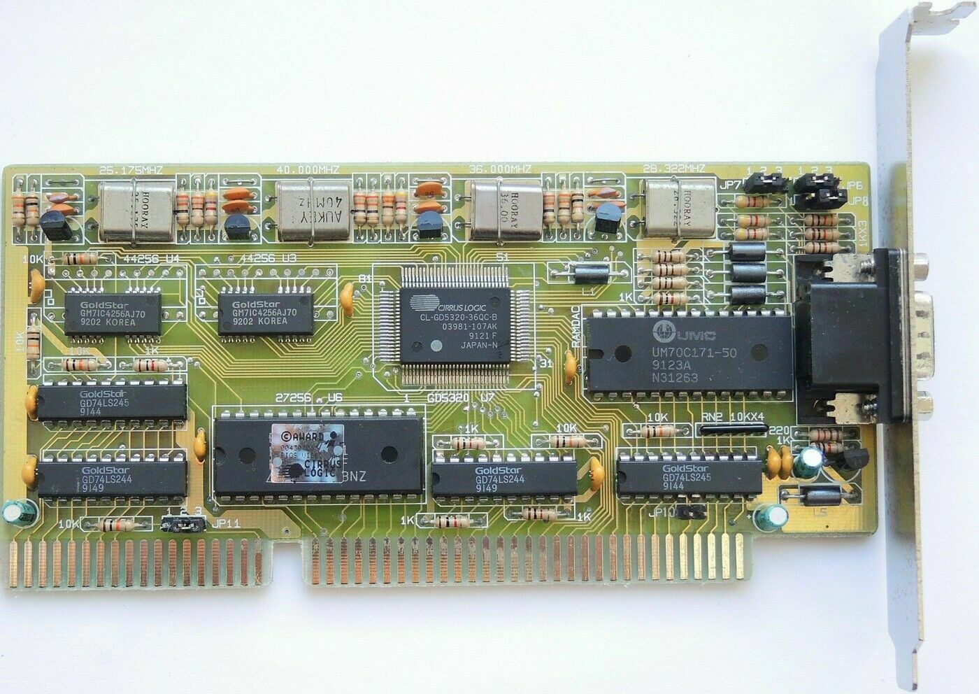 The CL-GD5320 was an ISA Super VGA chipset. These cards, since they were SVGA only, came with just the 15-pin D-SUB. The core clock ran at 40 MHz.