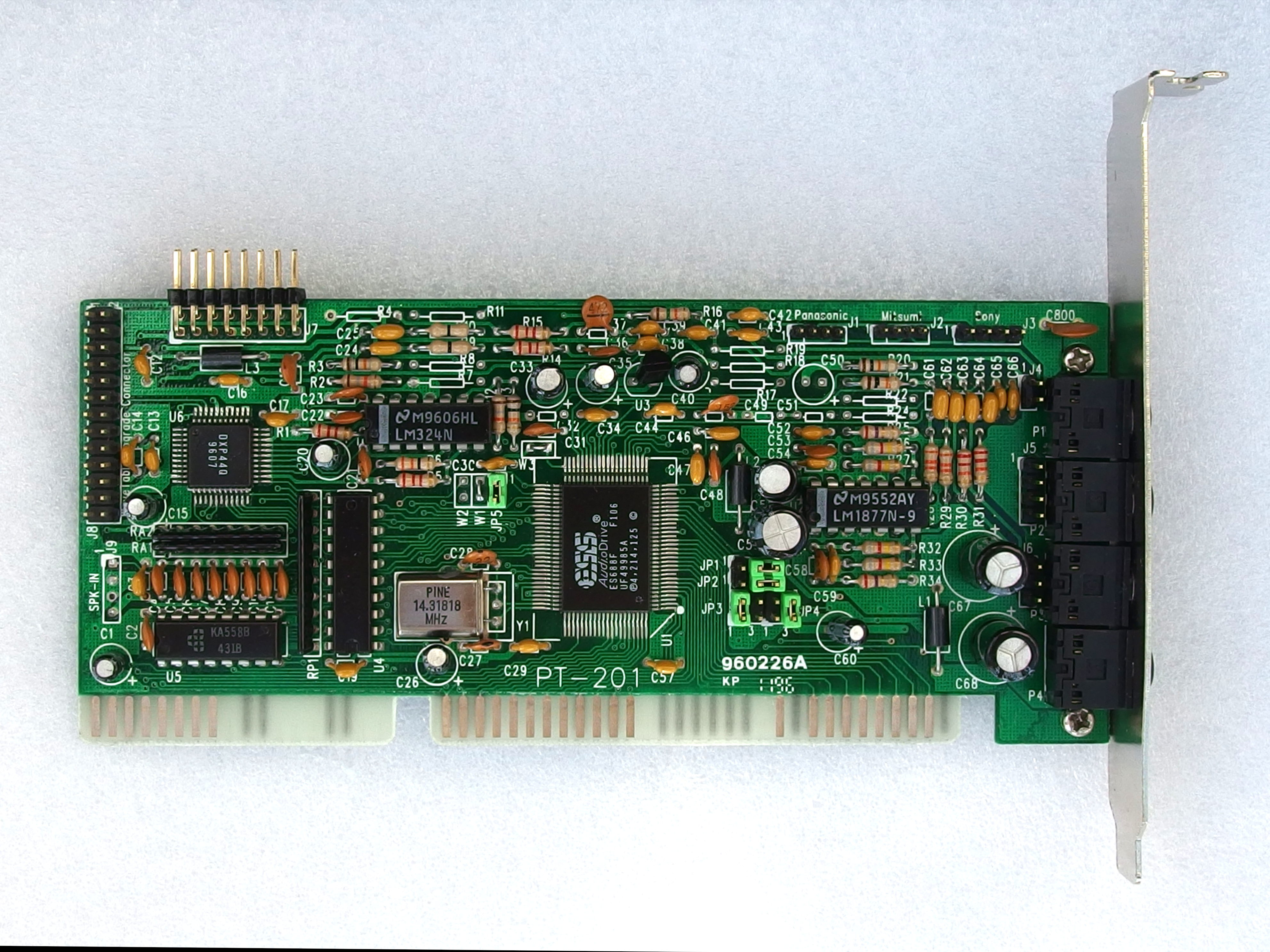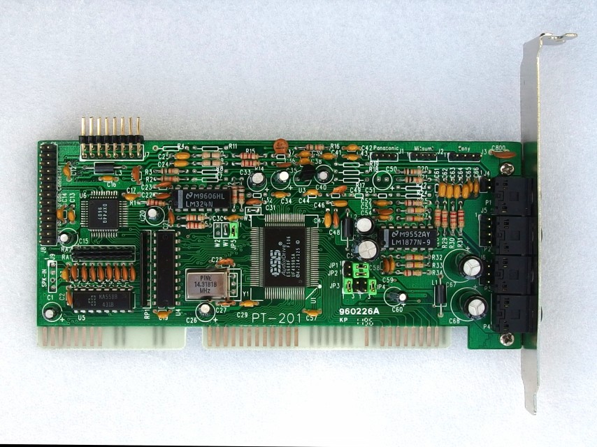 This PT2321 was Pine's low cost sound card solution. It supported full duplex (it could play and receive sound simultaneously). This made it ideal for internet phone applications which involved two way communication. It was fully plug & play-compatible and featured Binaura 3D surround sound.