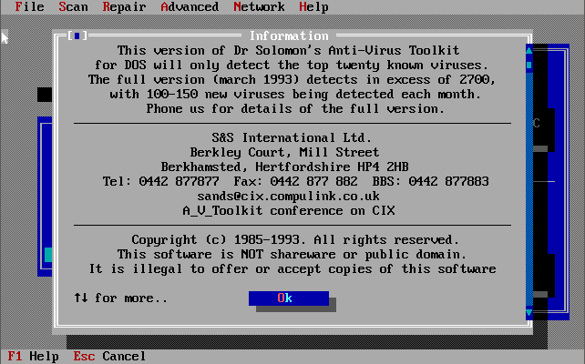 S&S International were the authors of Dr. Solomon's Anti-Virus Toolkit - a prominent early DOS anti-virus product.