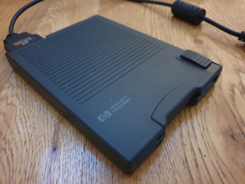 In addition to the hard disk, the Omnibook 600 series all came with an external 3.5" 1.44 MB floppy drive provided by TEAC. The interface and cable are proprietary to HP, and are very sturdy.