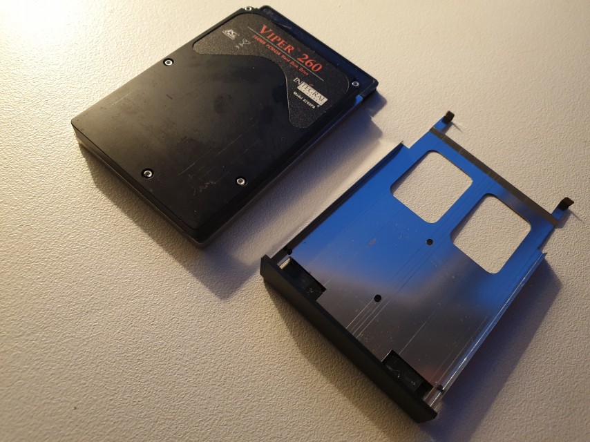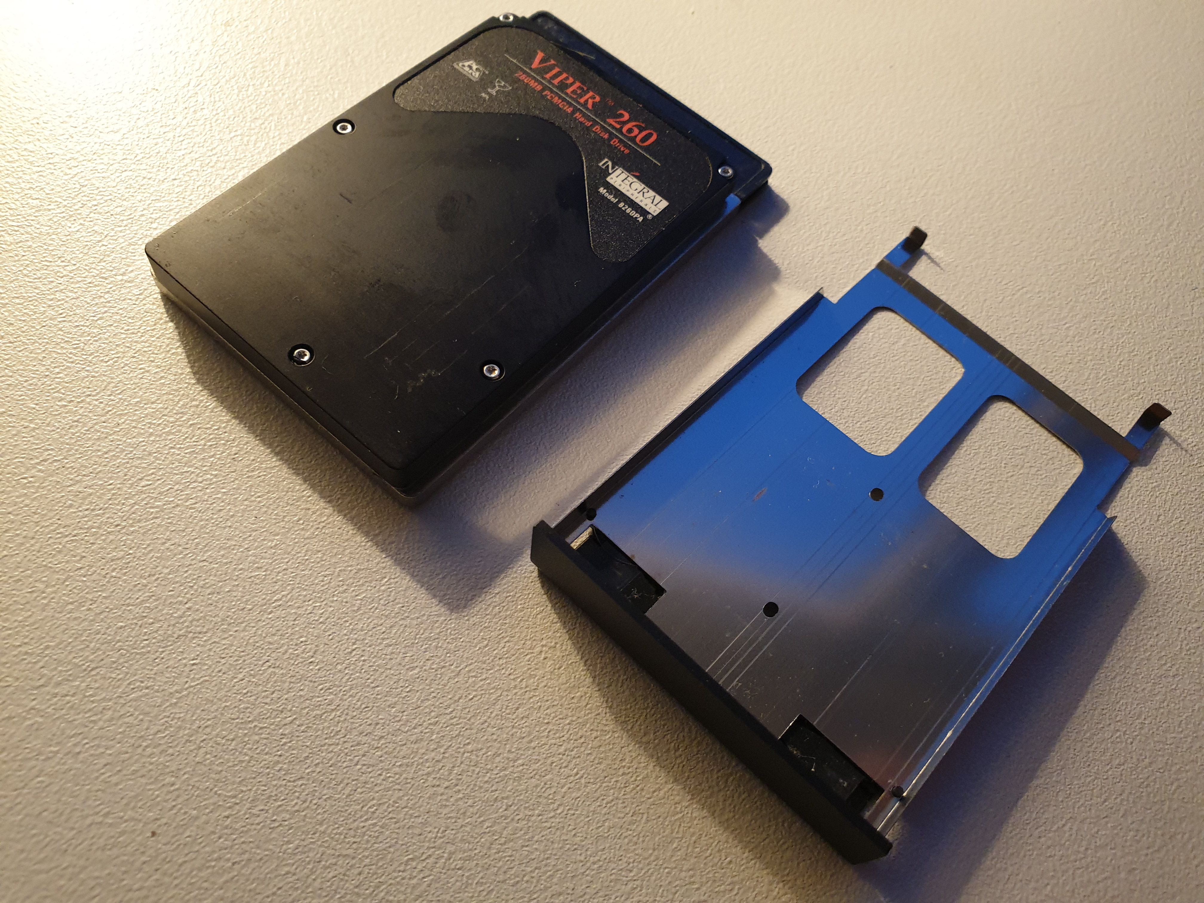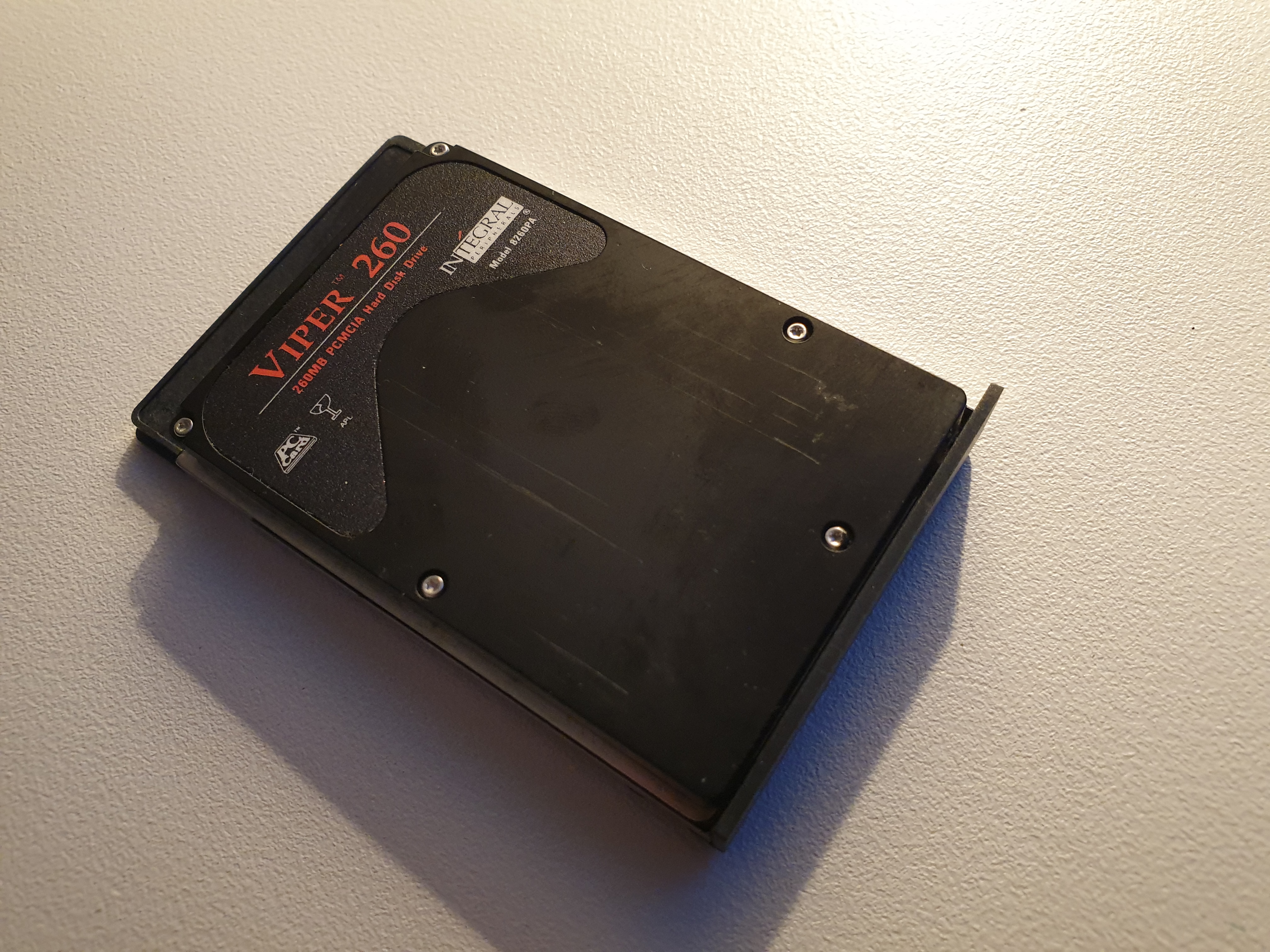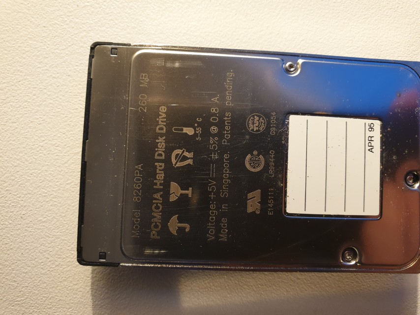 Oh, and it's whistling like crazy the whole time it's on - sounds like a filter cap is on its way out. *UPDATE* Nope, the noise is definitely coming from the Integral 260 MB PCMCIA hard disk. That's a relief, as I wasn't even expecting it to still function. Perhaps I can replace it with a CF card installed in a PCMCIA to CF adapter, as the modern-day CF card is just a 50-pin subset of the original PCMCIA 68-pin PC Card interface. I'm using such an adapter on an Amiga 1200 in my collection.