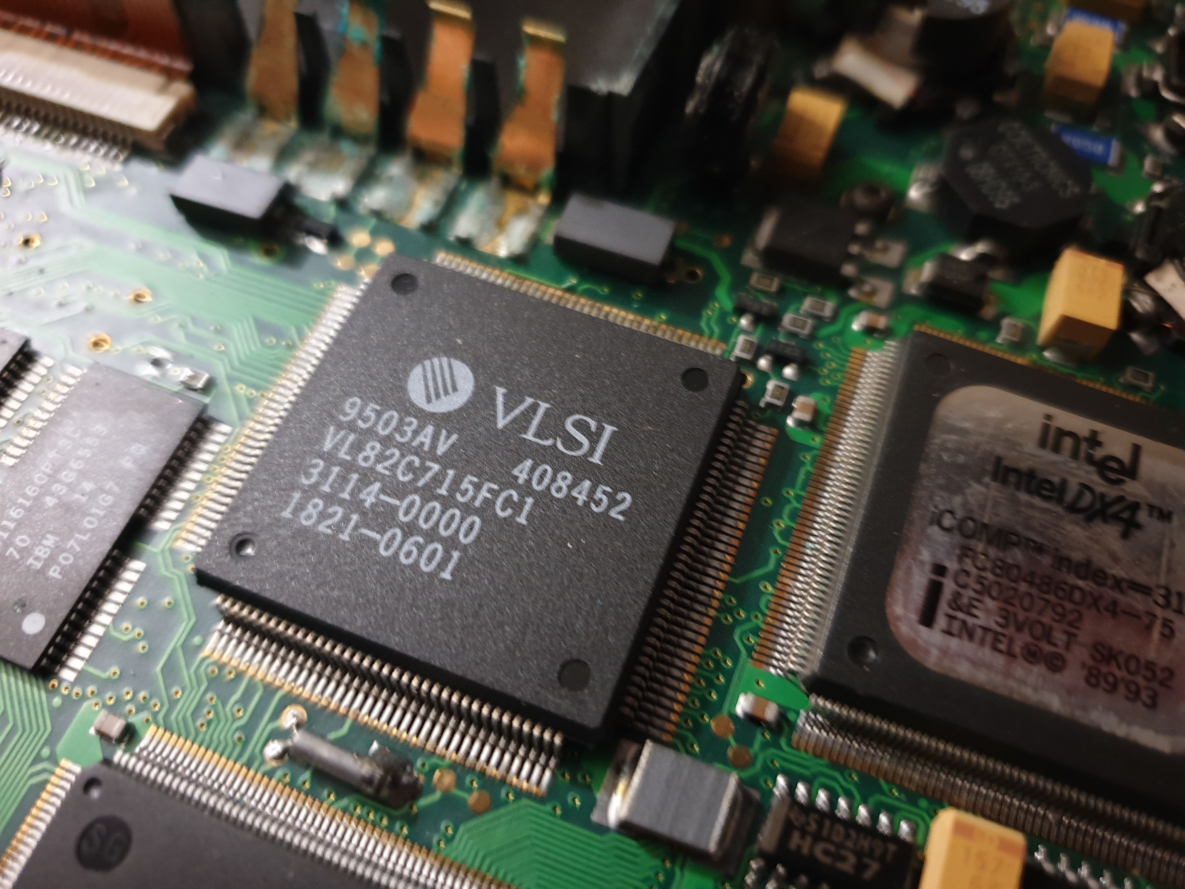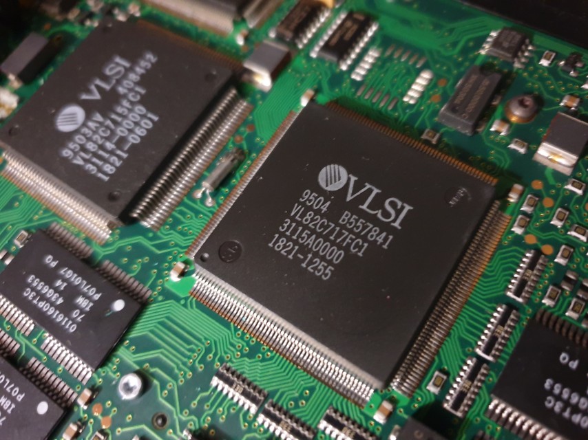 The OmniBook 600 series used the VLSI VL82C715 / VL82C717 chipset. The datasheets for these are not obtainable, so I have no more information on its capabilities. What is known is that it's a 486DX (32-bit) chipset that supports both the ISA bus and VESA Local Bus.