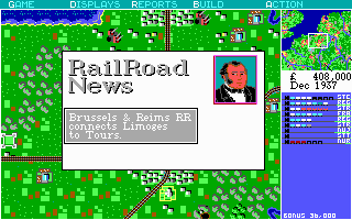 The player manages the business as described above and may also handle individual train movement and build additional industries. The game models the supply and demand of goods and passengers, as well as a miniature stock market on which players can buy and sell stock of their own or competing companies. The game also has other railroad companies attempting to put the player out of business with stock dealings and rate wars.