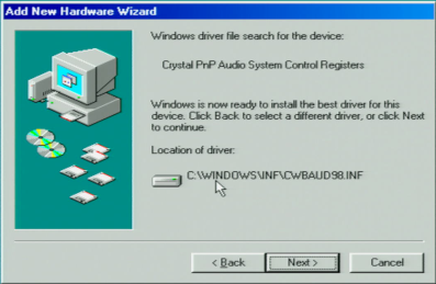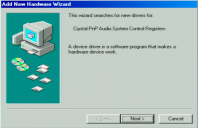 After installing the card and starting Windows 98SE, you will see the following as it detects the Plug & Play card. You will need your Windows 98SE CD-ROM handy (I assume it has a later driver for the CS4232):