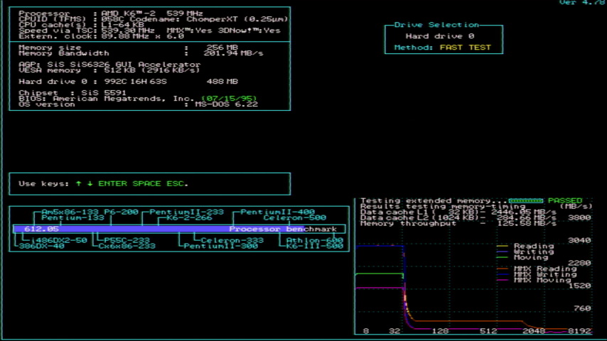 In Part 2 we got the PC Chips M590 powered up and ran some basic synthetic tests using an AMD K6-2 533 and older 72-pin SIMM memory. In this Part 3 I will conduct some tests using DIMM memory for comparison.